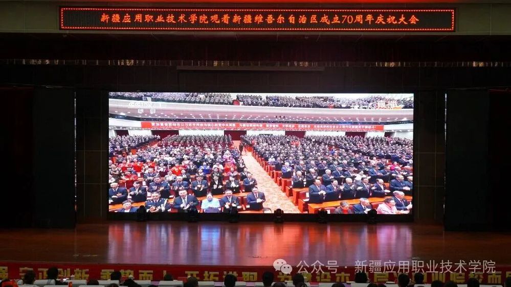 收看现场气氛庄重而热烈,师生们精神饱满、神情专注。当大会现场响起雄壮的国歌,各会场师生自发肃立齐声高唱,眼神中饱含对祖国的崇敬与对新疆的热爱。随着大会进程推进,从回顾新疆维吾尔自治区70年改天换地的发展成就,到展现新时代新疆团结奋进的精神风貌,一幕幕感人场景、一组组亮眼数据,让在场师生深受震撼、倍感自豪,不时响起阵阵热烈掌声。特别是当看到自治区在经济发展、民生改善、民族团结等领域的辉煌成就时,来自各民族的师生们相互交流感悟,脸上洋溢着骄傲与喜悦。