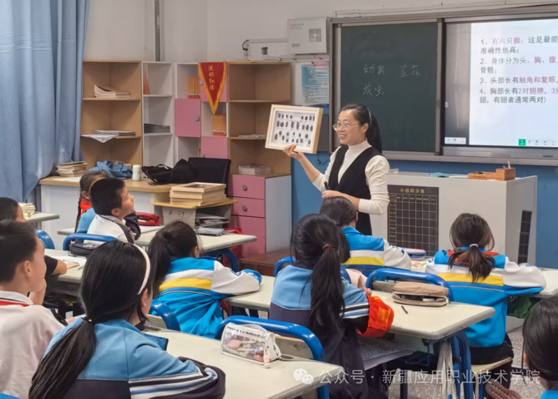活动伊始,园林与旅游管理学院教师李秀琴以《有趣的昆虫》为主题,用丰富的昆虫标本带领同学们步入奇妙的昆虫王国。她从蝴蝶翅膀的绚丽鳞片到蚂蚁社会的精密分工,用生动浅显的语言讲解了昆虫的生存智慧与生态价值,引发了孩子们的阵阵惊叹。