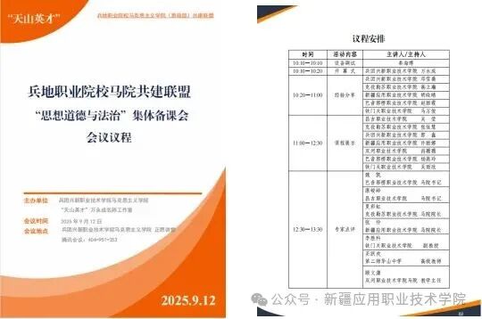为深入贯彻落实习近平总书记关于学校思政课建设作出的重要指示批示精神,近日,马克思主义学院参加了由兵团兴新职业技术学院马克思主义学院、“天山英才”万永成名师工作室主办的兵地职业院校马克思主义学院(思政部)共建联盟《思想道德与法治》集体备课会。