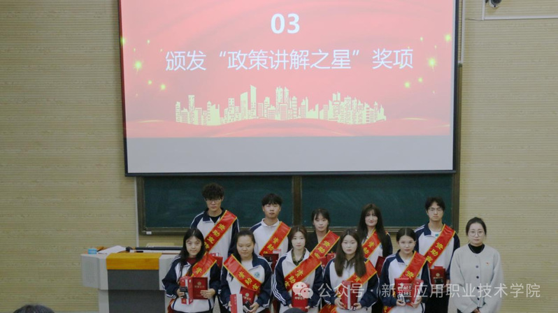 为表彰先进、树立榜样,会议现场对表现突出的宣传大使进行嘉奖,共评选出90名“优秀学生资助宣传大使”及10名“政策讲解之星”,资助管理中心教师为获奖学生颁发荣誉证书与奖品,台下掌声雷动,充分彰显了学校对学生参与资助工作的肯定与鼓励。