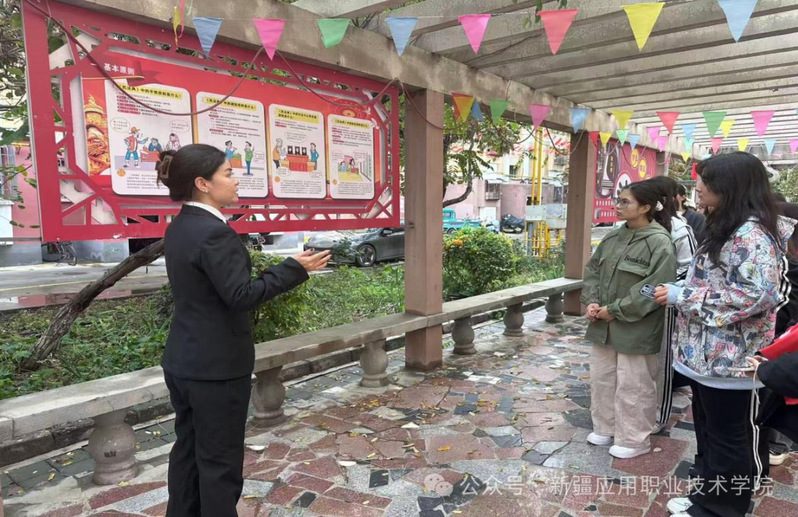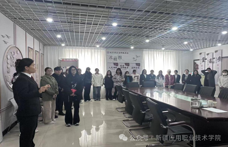 活动当天,同学们首先来到了芙蓉里西社区家事法庭。不同于传统法庭的严肃印象,家事法庭在布局上更显温馨,旨在缓和家庭纠纷带来的紧张气氛。在纺织服装学院法治副院长、同任芙蓉里西社区第一书记古丽扎达的详细讲解下,同学们了解了家事法庭受理案件的范围、特有的调解优先原则以及注重保护妇女、儿童、老年人合法权益的司法理念。