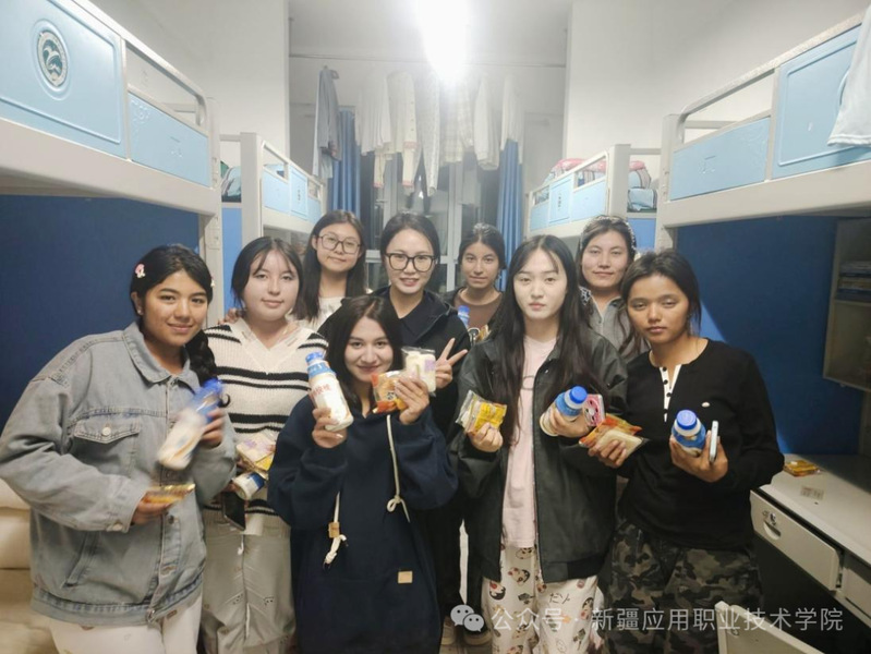 中秋佳节将至,为切实关怀留校学子,让异乡求学的学生感受校园温情,中秋佳夜,经济管理学院现代物流管理专业班级班主任闫晓蒙老师,前往学生宿舍开展中秋慰问活动,为来自南疆和田、喀什、阿克苏等地区留校学子送去节日祝福与慰问物资。此次慰问,闫晓蒙老师结合自身求学经历精心筹备物资,除月饼、南疆特色干果外,还特意准备了营养快线——源于上学期间,学院每到中秋都会为学生发放月饼与营养快线,如今闫晓蒙老师以教师身份传承这份校园温情。