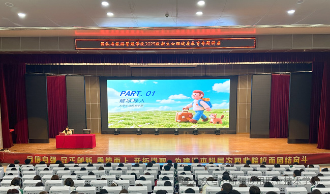 为帮助2025级新生更快适应大学生活、维护心理健康,园林与旅游管理学院开展2025级新生心理健康教育专题讲座,特邀学生工作部大学生心理健康教育咨询中心刘宛玲老师主讲,全体2025级新生参与。