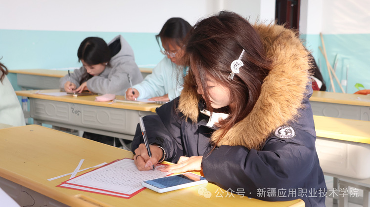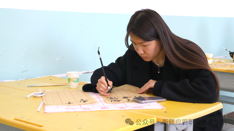 本次书法大赛吸引了全校各二级学院的115名优秀选手参赛,所有选手均经过前期筛选脱颖而出。比赛现场,工作人员提前明确规则:选手需在1小时内完成创作,使用主办方提供的纸张,笔墨可自主选择自带或使用主办方材料,且作品需注明个人信息、不得出现违规标记。