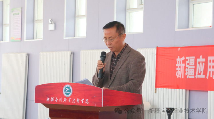 图为 学院党委委员、宣传部部长卡吾孜亚提・斯德克致辞