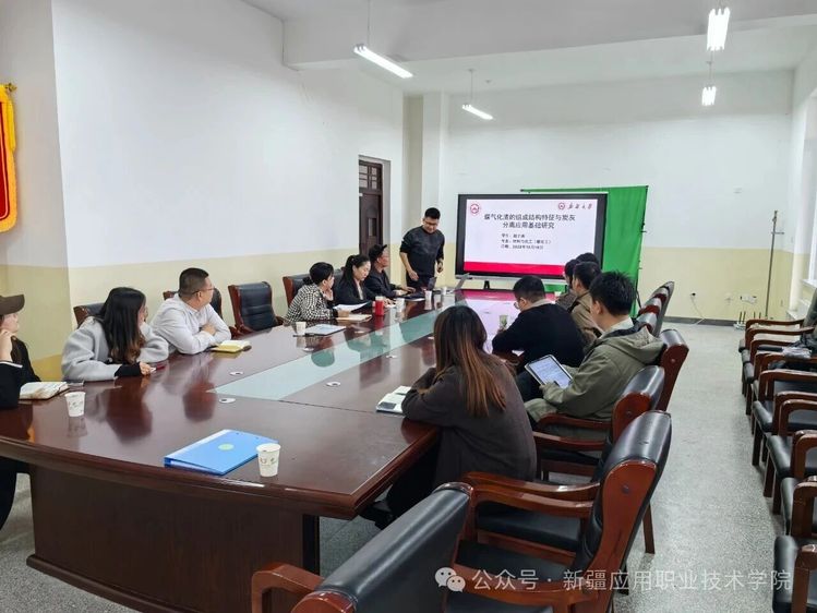 在学术交流环节,李国峰院长首先分享了教学成果奖的申报经验与技巧,结合实例在材料撰写、亮点提炼等方面进行了细致讲解,为博士团队未来的教学成果转化提供了宝贵参考。随后,赵子涛、赵沁两位教师先后汇报了“煤气化渣资源化利用路径”课题。该课题直指伊犁州能源产业的环保痛点,致力于探索固废的高价值回收路径,展现出显著的产业价值。博士团队在听取汇报后,从技术优化、数据验证及产业化落地等角度提出了系列专业建议,为课题的深入推进拓宽了思路。贾琪老师则系统解读了自治区科技援疆与重大研发项目的申报指南,围绕申报条件、支持重点与流程等关键信息进行了梳理,并结合学院科研优势,为博士与教师团队精准匹配申报方向、提升中标率提供了清晰指引。