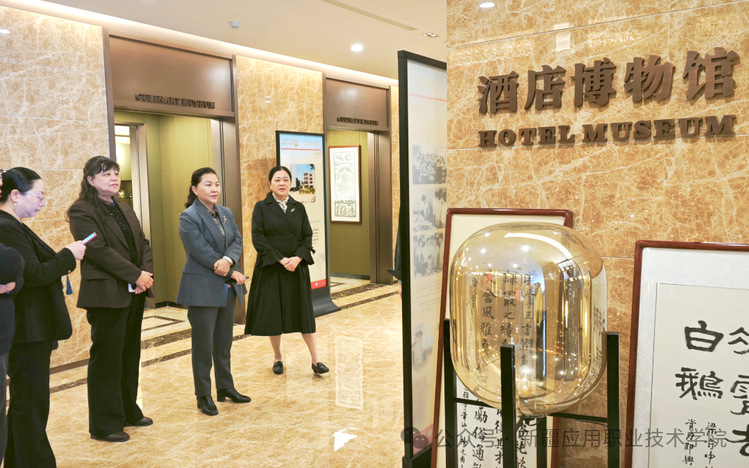 座谈会前,一行人参观了酒店博物馆,了解中国酒店业发展历史,馆内陈列的老物件、文献资料与复原场景,生动展现行业迭代中的文化传承与服务革新。一行人不时驻足交流,纷纷赞叹学院深耕行业教育的匠心和培育专业人才上的扎实成效。