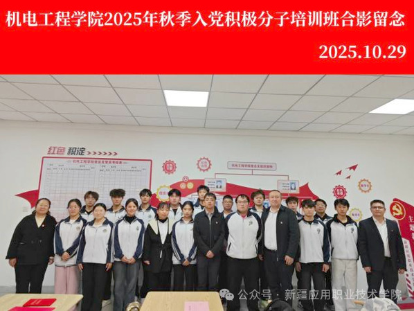 为进一步加强入党积极分子的培养和教育,提高发展党员工作质量,近日,机电工程学院在精艺楼四楼党员活动室,成功举办了2025年秋季入党积极分子培训班开班仪式,并正式拉开了为期两周的培训序幕。此次活动由机电工程学院党总支精心策划与组织,机电工程学院党总支班子成员及全体入党积极分子共同参与。18名学员通过为期2周的系统化培训,补足精神之钙、筑牢信仰之基,进一步培优建强党员后备力量。