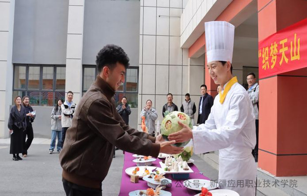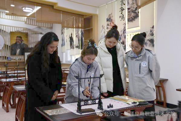 当日下午,来自无锡商业职业技术学院师生代表在主校区西院博悟轩开展“织梦天山话团结”主题实践活动,活动包括室内文化宣讲与室外“织梦天山 共赏江南”非遗民俗市集,通过传承人现场演示技艺、展示特色展品,吸引师生体验互动,为校园注入非遗文化活力。活动后,桂海进副书记一行参观了来自无锡商业职业技术学院的援疆干部杨叶勇所在的经济管理学院实训楼,对经济管理学院相关专业实训室的建设和援疆工作室的打造给予了高度评价。
