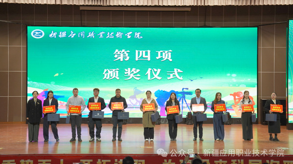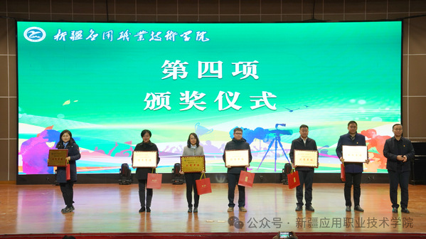 学院党委委员、宣传部部长卡吾孜亚提·斯德克为信息宣传工作优秀单位进行颁奖。