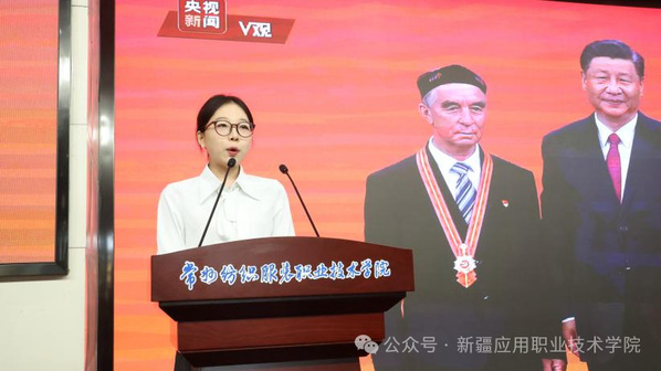 主题报告会上,两位新疆学子深情分享独库天路的壮阔史诗与买买提江・吾买尔的赤诚人生。滚烫的故事传递着新疆大地的坚韧底色与温情力量,引发常州学子强烈共鸣,现场掌声阵阵,成为青春与青春的真挚对话、心灵与心灵的隔空呼应。