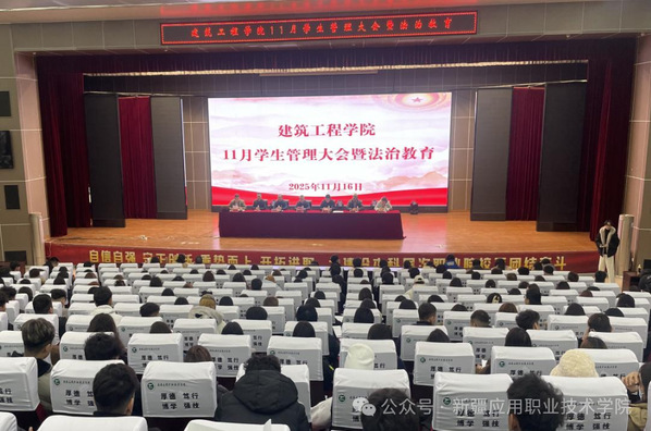 为做好2026届毕业生教育管理服务工作,促进毕业生顺利毕业、高质量就业,不断增强学生法治意识,近日,建筑工程学院在主校区北院学术报告厅召开11月学生管理大会暨法治教育讲座。建筑工程学院班子成员,2026届毕业班全体辅导员、班主任及全体学生参加会议。