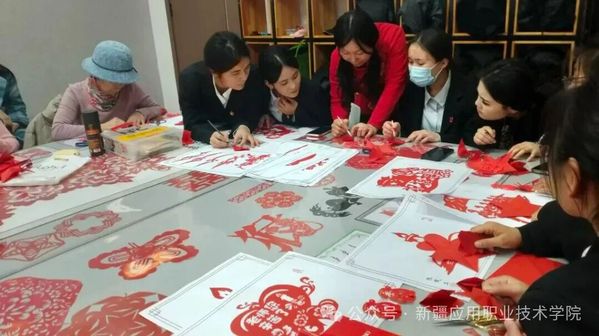 “结对体验”环节将活动推向高潮。学生党员与社区居民结成创作小组,发挥各自优势共同完成党史主题剪纸作品。学生党员发挥专业所长,指导居民精准把握裁剪力度与图案比例;社区居民则分享生活阅历与红色记忆,为创作注入情感温度。剪刀开合间,一张张普通的红纸逐渐变成寓意深刻的剪纸作品。创作过程中,欢声笑语与党史故事分享交织,不仅拉近了党群距离,更让红色文化在互动交流中深入人心。