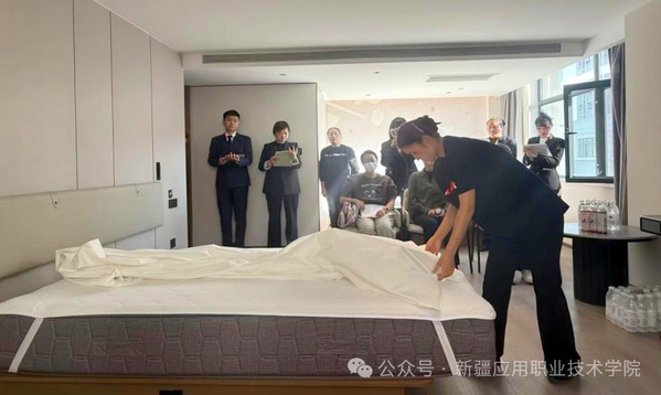 本次活动让教师走出校园、走进企业,零距离感知行业发展的脉搏。现场酒店员工们一系列操作精准而优雅,充分展现了其精湛的业务技能和专业的职业素养。教师们纷纷表示,此次观摩不仅直观地了解了当前行业对“中式铺床”的最新规范与效率要求,更收获了大量生动、鲜活的教学案例,为今后在《客房服务与管理》等课程的实践教学提供了新的思路和素材。