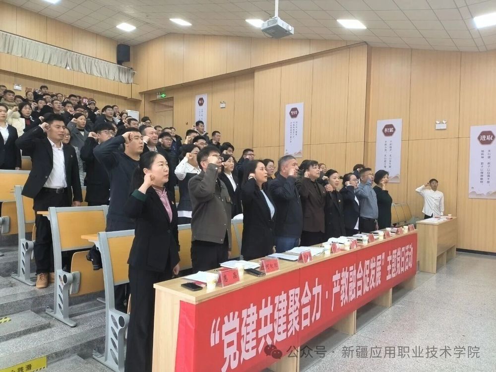 为深入学习贯彻党的二十届四中全会精神,搭建政校企三方精准对接桥梁,推动奎屯-独山子经济技术开发区产教联合体以党建凝聚发展共识、强化交流协作,11月28日下午,学院主校区西院巧匠阁织梦坊内党旗飘扬、氛围庄重,“党建共建聚合力·产教融合促发展”主题党日活动隆重举行。学院党委委员张文汇、奎-独经开区人力资源和就业促进局党支部书记、局长蒋齐萱,以及奎-独经开区人力资源和就业促进局党支部、学院科培工联合党支部、机电工程学院党总支、教务处党支部、财资党支部全体党员、产教联合体企业党员代表,共同参加此次活动。