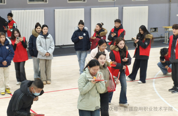 互动环节中,“同心接力运乒乓”游戏成为全场焦点,将现场气氛推向高潮。该游戏要求各小组师生摒弃双手辅助,仅靠乒乓球拍默契配合,将小小的乒乓球安全护送抵终点。赛场之上,全体师生凝心聚力,生动诠释了“各民族像石榴籽一样紧紧抱在一起”的深刻内涵。阵阵掌声与欢声笑语交织,为冬日校园注入了滚烫的温情与活力。