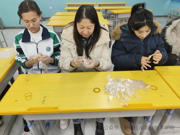 活动伊始,辅导员结合纺织专业特色开展心理减压小课堂,分享 “动手实践减压法”,讲解压力与情绪管理的实用技巧,引导同学们在手工创作中放松身心、调节状态。随后,心理专干作为指导团队,详细介绍了扎染这一国家级非物质文化遗产的历史渊源与文化价值,从秦汉起源到唐代盛行的发展脉络,从捆扎防染的工艺原理到蓝白相间的艺术特色,让同学们在动手前深入感受传统技艺的魅力。