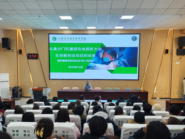 为深化产教融合背景下大学生创新创业教育,12月2日,学生工作部邀请江苏农林职业技术学院畜牧兽医学院党总支书记刘庆新开展题为“从禽沙门氏菌研究探析大学生创新创业项目培育”的双创主题讲座。