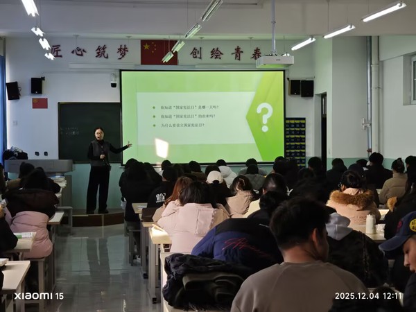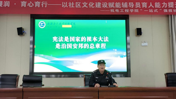 为进一步增强学生法治观念,营造校园尊法学法守法用法的浓厚氛围,在“宪法宣传日”当天,机电工程学院邀请学院法治副校长、机电工程学院校园警务站唐警官开展专题普法宣讲。唐警官围绕青少年常见法律问题、违法犯罪预防及自我保护等内容,为同学们带来一堂生动而深刻的法治教育课,助力同学们系好法治“安全扣”,走稳青春成长路。