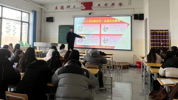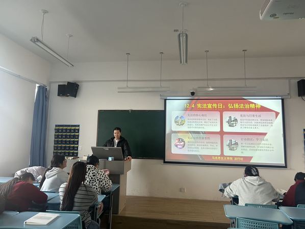 教研室充分发挥学生社团的积极作用,组织学生在课前利用宝贵的十分钟开展“微宣讲”。法行社的同学们围绕“弘扬法治精神”这一核心,用通俗易懂的语言阐释了宪法作为国家根本大法的核心地位,讲述了宪法与我们日常生活的紧密联系,并结合校园实际,解读了宪法中与学生切身权益相关的条款,向全体同学发出了主动学习宪法、研习宪法的行动倡议,引导同学们在日常学习生活中主动汲取宪法知识,提升法治素养。