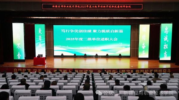 12月17日,学院召开2025年度二级单位班子述职测评大会。学院党委书记陈梅兰,学院党委副书记、院长叶列吾别克·那克斯别克,学院党委班子成员、全体中层干部参加会议,会议由学院党委副书记、组织人事部部长王广强主持。大会以“笃行争优创佳绩 聚力提质启新篇”为主题,全面复盘2025年度工作成效,查找问题与不足,精准谋划来年发展蓝图,为学院申创本科层次职业学校和2026年工作打下坚实的基础。