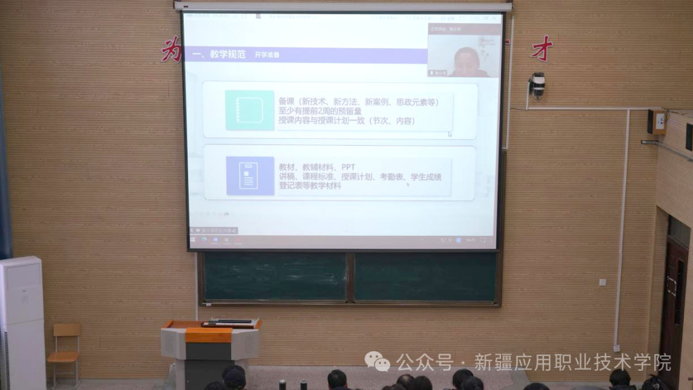 讲座中,张小华研究员立足新时代职业教育高质量发展要求,围绕“教学规范、教学督导、教学技巧、质量提升”四个维度展开深入讲解。她系统阐释了教学督导“督”与“导”的双重职能定位,强调督导工作既要严格规范教学行为,更要注重指导帮扶,特别是要帮助青年教师提升教学能力。通过分享江苏农林职业技术学院在教学督导制度建设、督导方法创新等方面的先进经验,为澳门网投督导工作提供了有益借鉴。