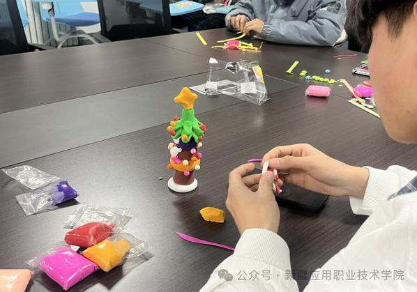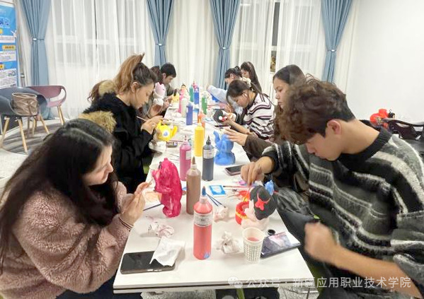 创作过程中,同学们全神贯注沉浸其中,指尖翻飞间,普通的材料逐步蜕变为形态各异的创意佳作。粘土组同学或独自凝神构思,或双人默契协作,用多彩粘土塑造出萌趣玩偶、创意摆件等充满想象力的造型;石膏娃娃组同学悉心调配颜料,以细腻笔触勾勒线条、填充色彩,在专注涂色的过程中舒缓紧绷心绪;幸运星折纸组同学分工明确、默契配合,折星、整理、粘贴有条不紊,将对生活的美好期许融入每一颗星星,合力完成集体创意作品。
