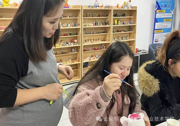 本次活动以手工创作为核心载体,精准对接不同学生的兴趣爱好,设置粘土创意手工、石膏娃娃DIY、幸运星折纸工创三个平行项目。活动伊始,辅导员与志愿者共同营造轻松愉悦的互动氛围,志愿者详细讲解各项目的创作技巧与安全规范,辅导员则适时与学生沟通交流,引导大家卸下顾虑、全身心投入创作。