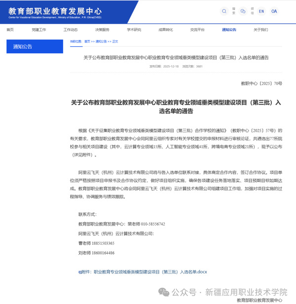 该项目入选是对学校深化产教融合高质量、办学能力高水平的充分肯定。下一步,学校将严格对标建设要求,细化任务节点、强化资源保障,持续探索AI赋能职教新路径,全面提升人才培养质量,为服务新疆对外开放与区域经济高质量发展注入新动能。