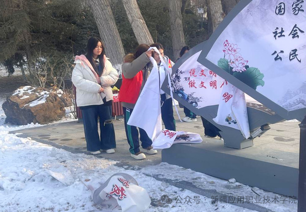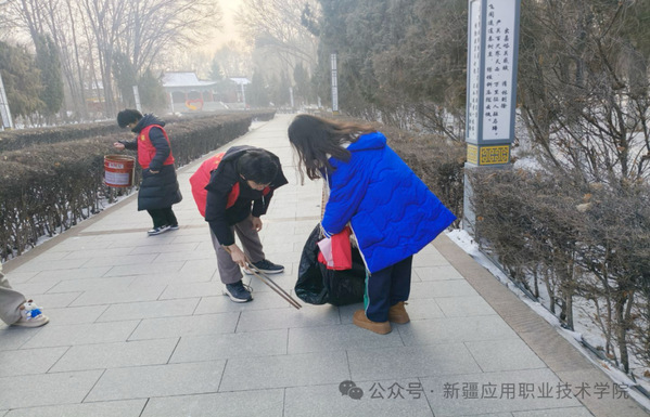 活动现场,学生们分组协作、热情高涨。在环境清洁环节,大家不惧冬季户外寒意,细致捡拾园区道路、休憩区的垃圾,认真擦拭公共设施,全力清理卫生死角,以实际行动改善公园环境面貌;感恩互动环节,学院搭建专属分享角,学生们主动分享自身受助经历与实践感悟,畅谈成长收获与回馈社会的心愿,随后共同制作感恩环保宣传卡片,向过往市民传递感恩情怀与环保理念,带动更多人参与文明建设;成果复盘阶段,师生齐聚一堂,验收清洁成果、梳理活动经验、交流志愿服务心得,为后续志愿活动积累了宝贵实践素材。